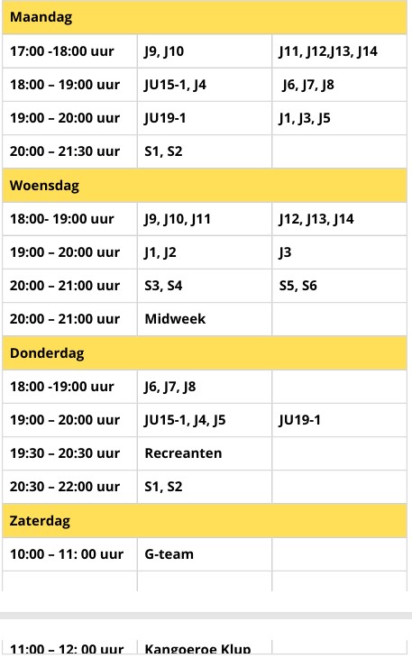 De nieuwe teamnamen gaan in vanaf maandag 16 maart en staan ook al goed in het document met de trainingstijden. Verder wijzigt er niets aan de teamsamenstellingen of trainers. Heb je nog vragen? Neem dan gerust contact op met één van ons.